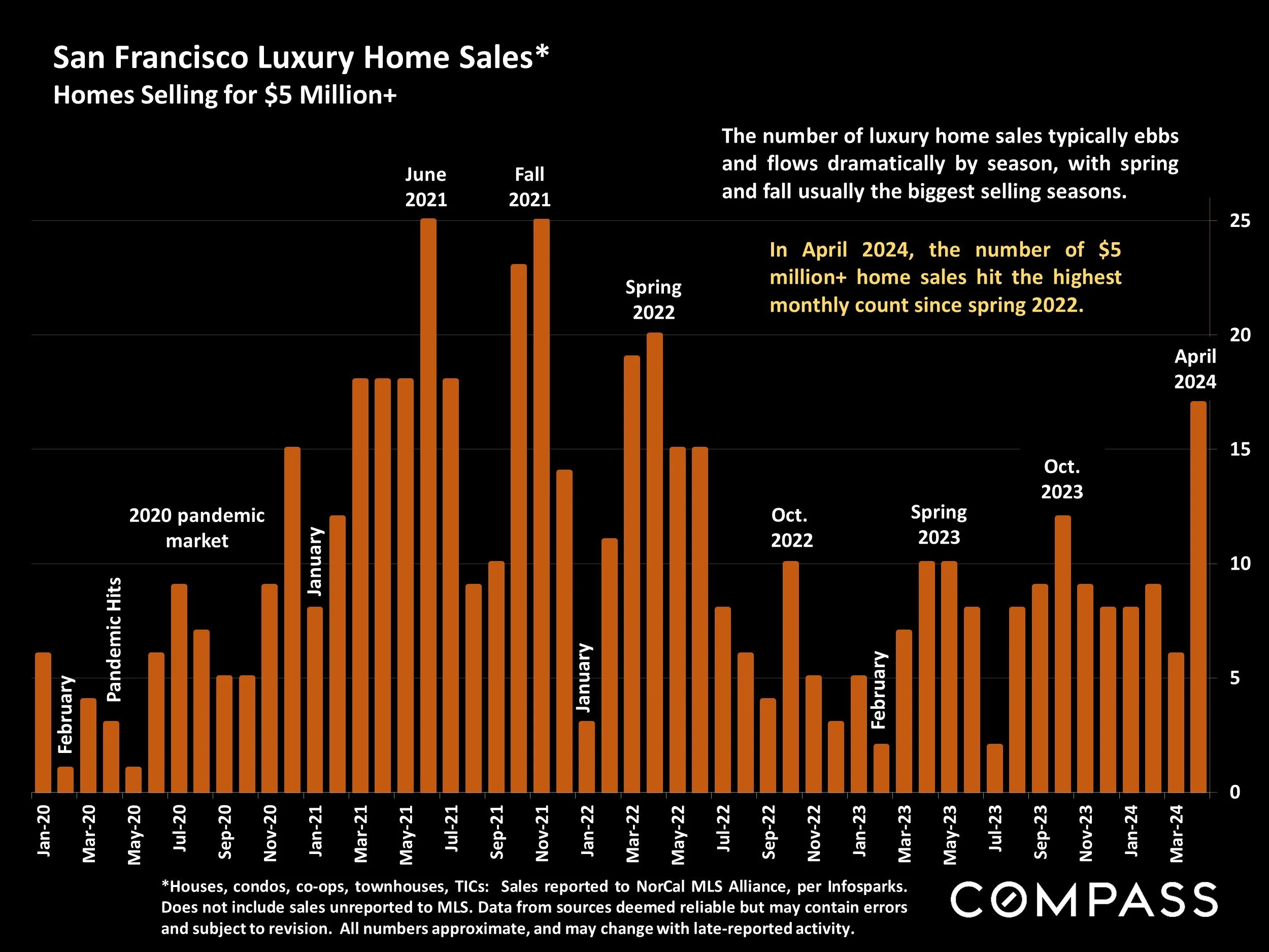 Also, as I covered last month, the top end of the market is coming back. We’ve seen more $5M+ sales since the COVID high of 2022. Hopefully, this continues as it’s another vote of confidence for the overall market.