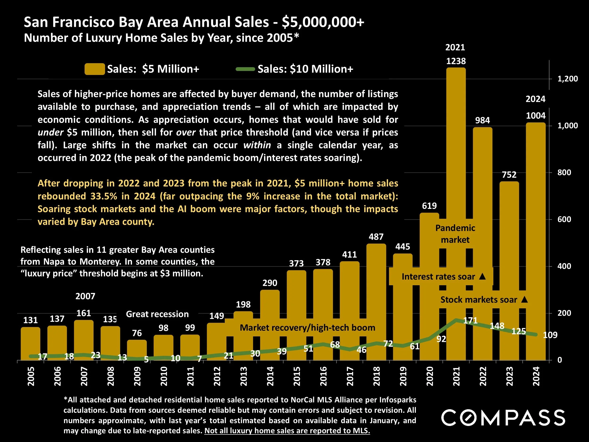 Another positive metric for the Bay Area market was the big increase in the number of $5,000,000+ sales. Activity was up over 33% in 2024 (versus 2023)! That is a huge jump and brings a very positive signal to the market. The increase in sales activity should sway some sellers that have been sitting on the fence (to sell or not) to move forward and list their property.