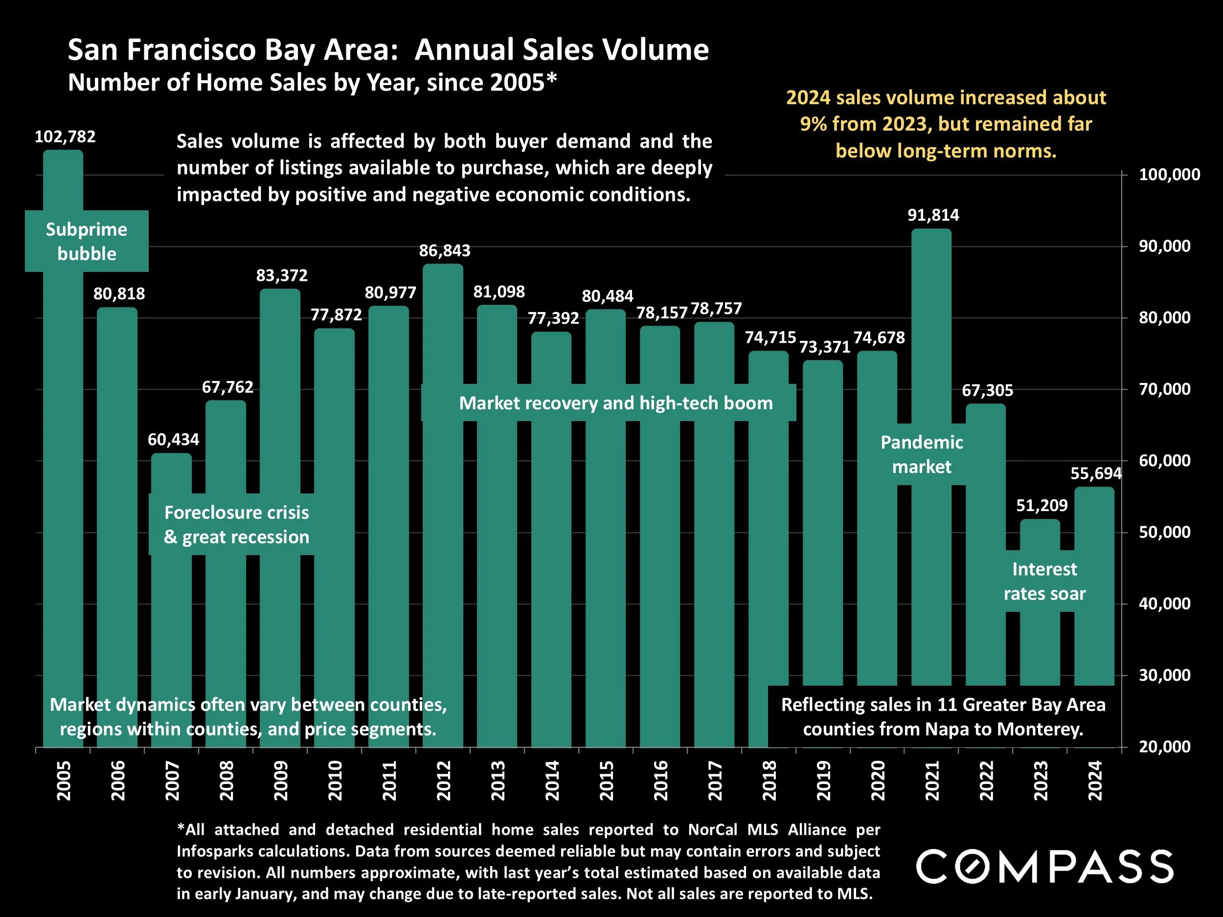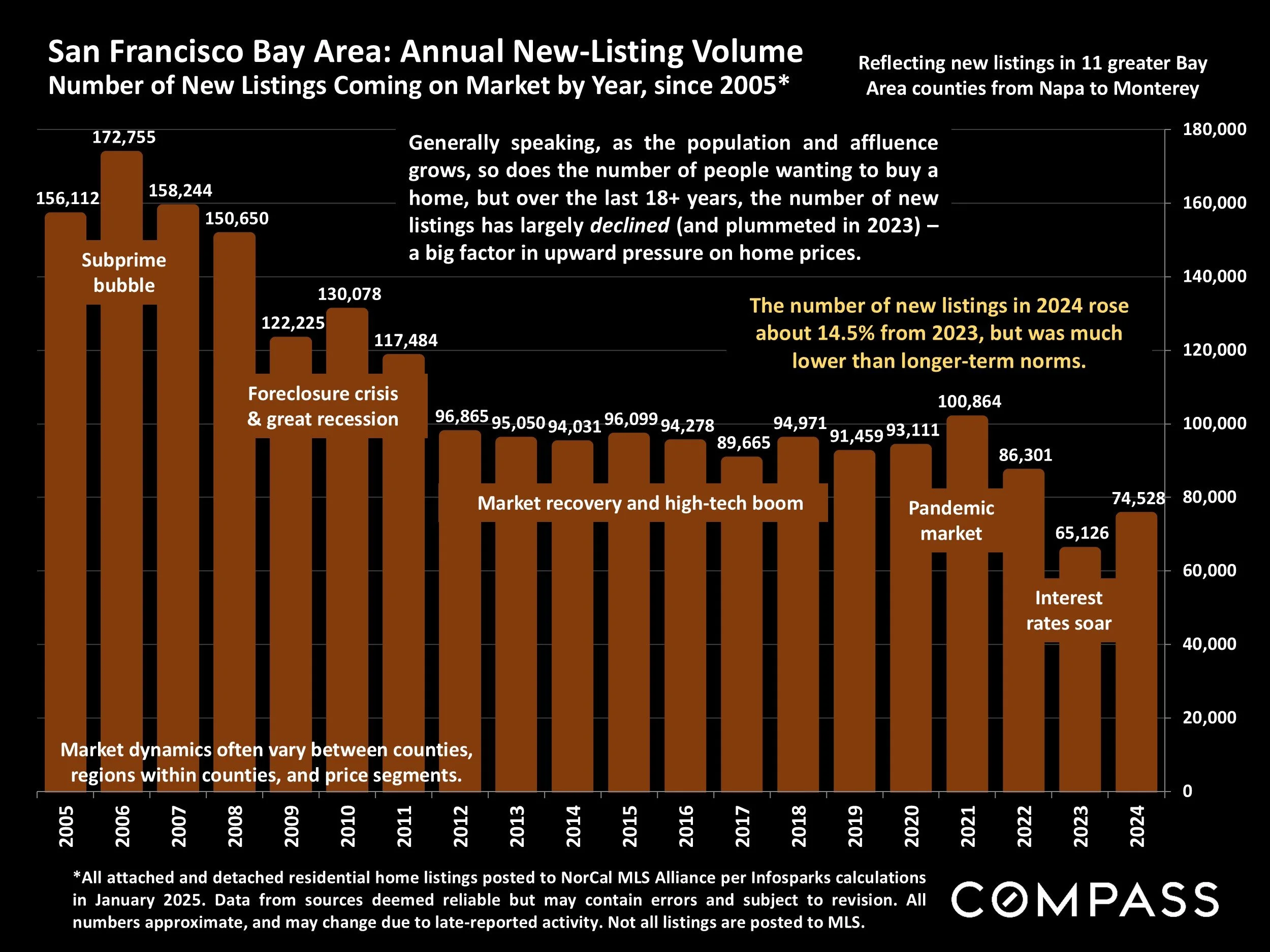 Looking at inventory in 2024, we experienced a positive trend. 2024 was the first full year with an uptick in listings throughout the Bay Area since the days of COVID. Hopefully this trend continues through to 2025 and we see more availability (of homes) for buyers.