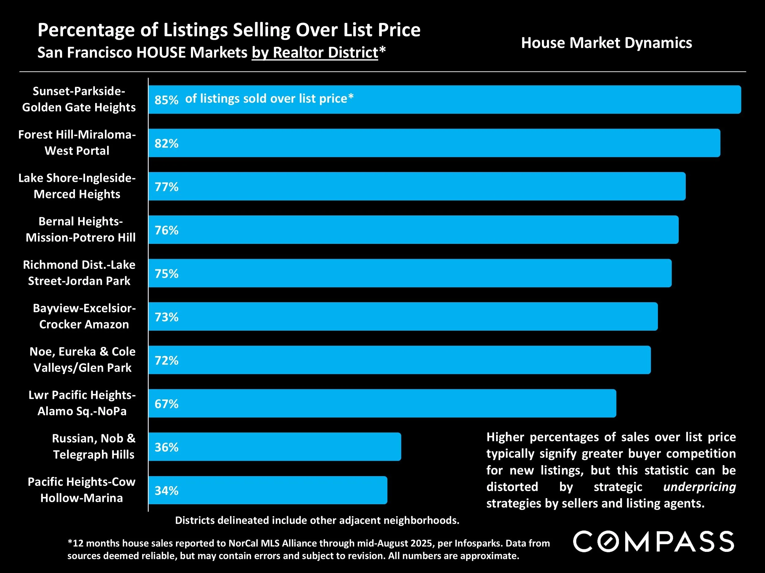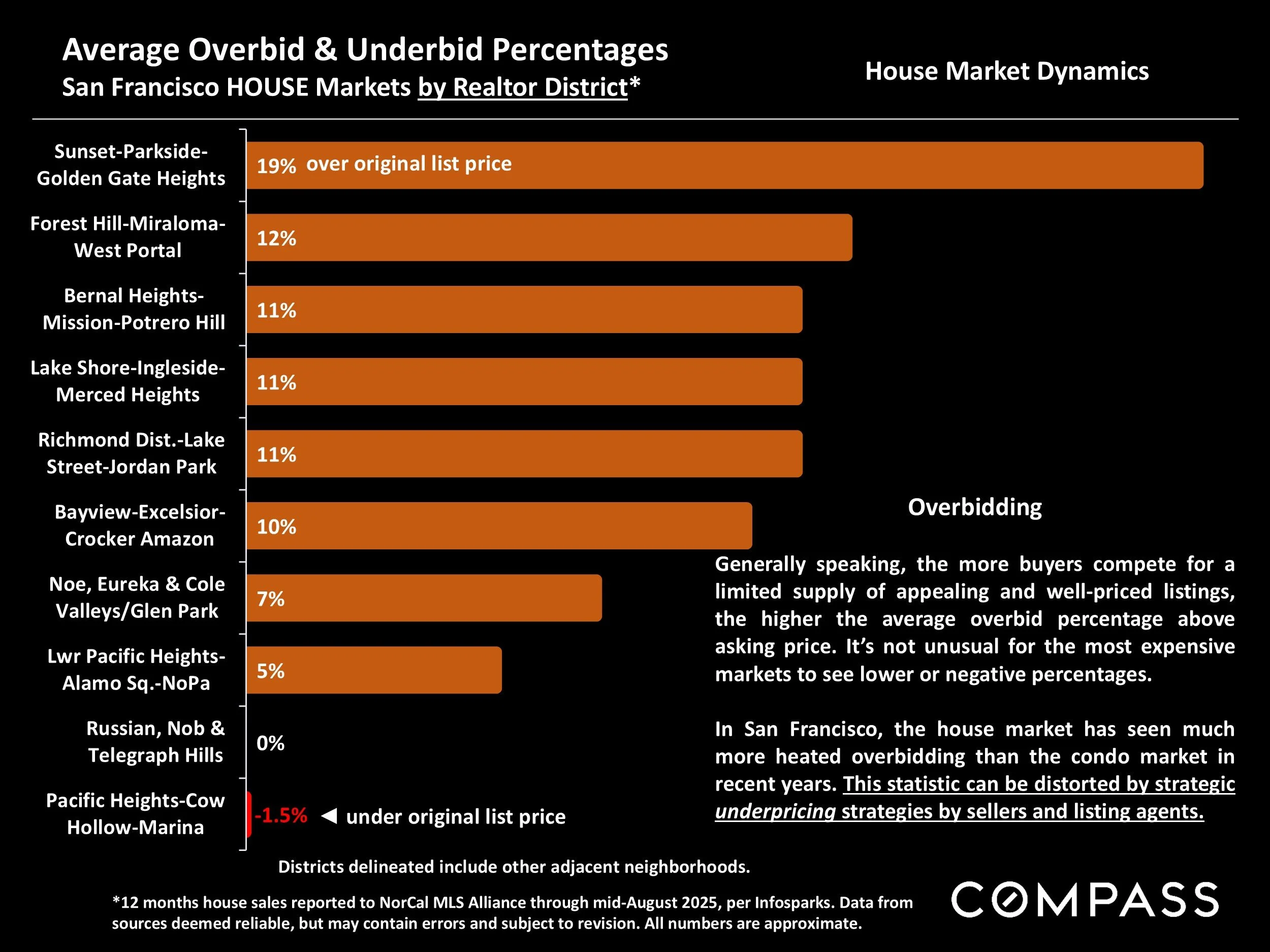 With the anticipated reduction in interest rates adding fuel to the fire for buyers, what neighborhoods should be pursued as well as possibly ignored? Looking at neighborhoods and percent of properties selling over asking, you can expect lower cost neighborhoods to lead the list.
