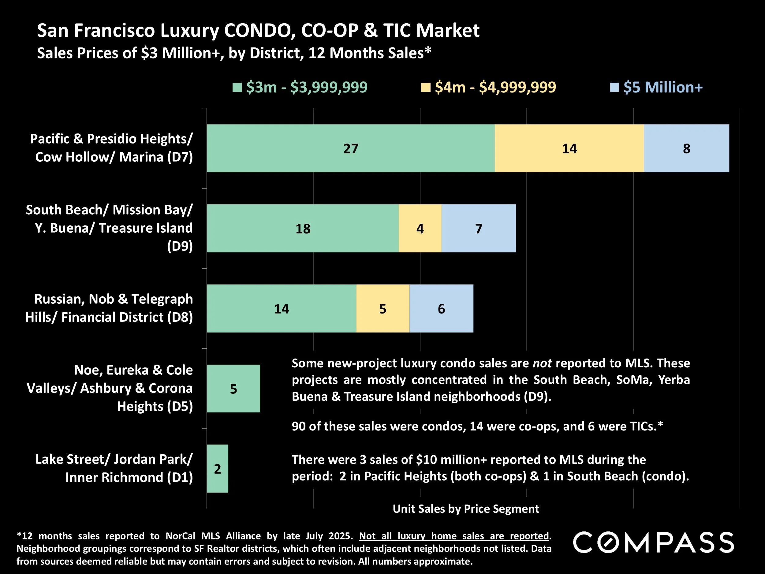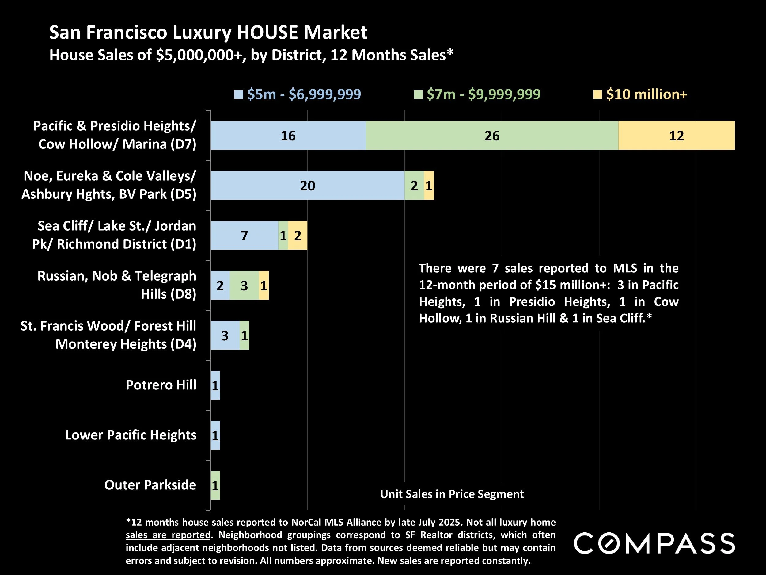 Looking at the luxury market and where those homes are sold, it’s no mystery that the majority of those homes are on the north side. But the second place “mover” is the dramatic uptick in prices in Noe/Cole Valley (generally D1 - the Richmond takes second place).