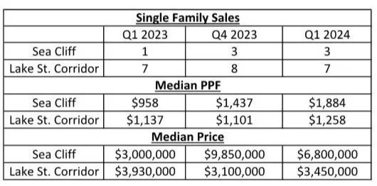 Last quarter I reported that we experienced a surge of North of Lake Street homes that came to market (four homes). They all sold and this quarter the trend continued; four more North of Lake Street properties were listed and all sold quickly with the exception of the top sale in the Corridor.