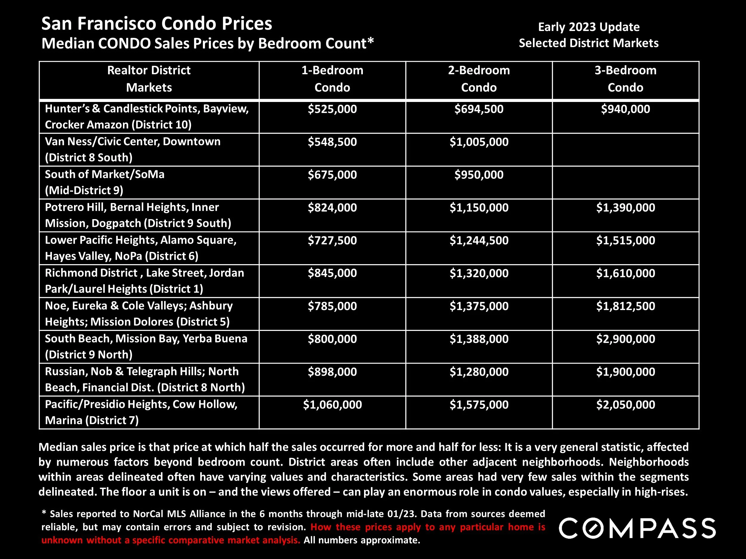 Looking at single family and condo pricing by select neighborhood and bedroom count, the charts below should help you get a better understanding of the price of entry.